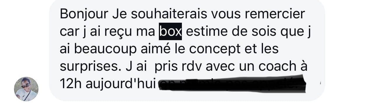 J’aime bien les petits cadeaux (très importants dans une box), maintenant je vais me délecter avec les méditations quotidiennes. Je suis aussi tentée par la séance de coaching. En tout cas le concept est plus qu’intéressant, je dirai même très pertinent. Il ne me reste qu’à vous remercier. ‘